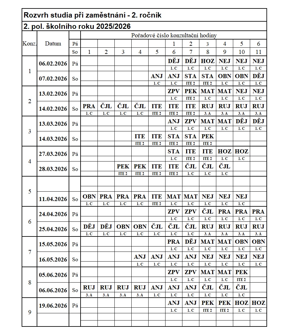 Změny v rozvrhu